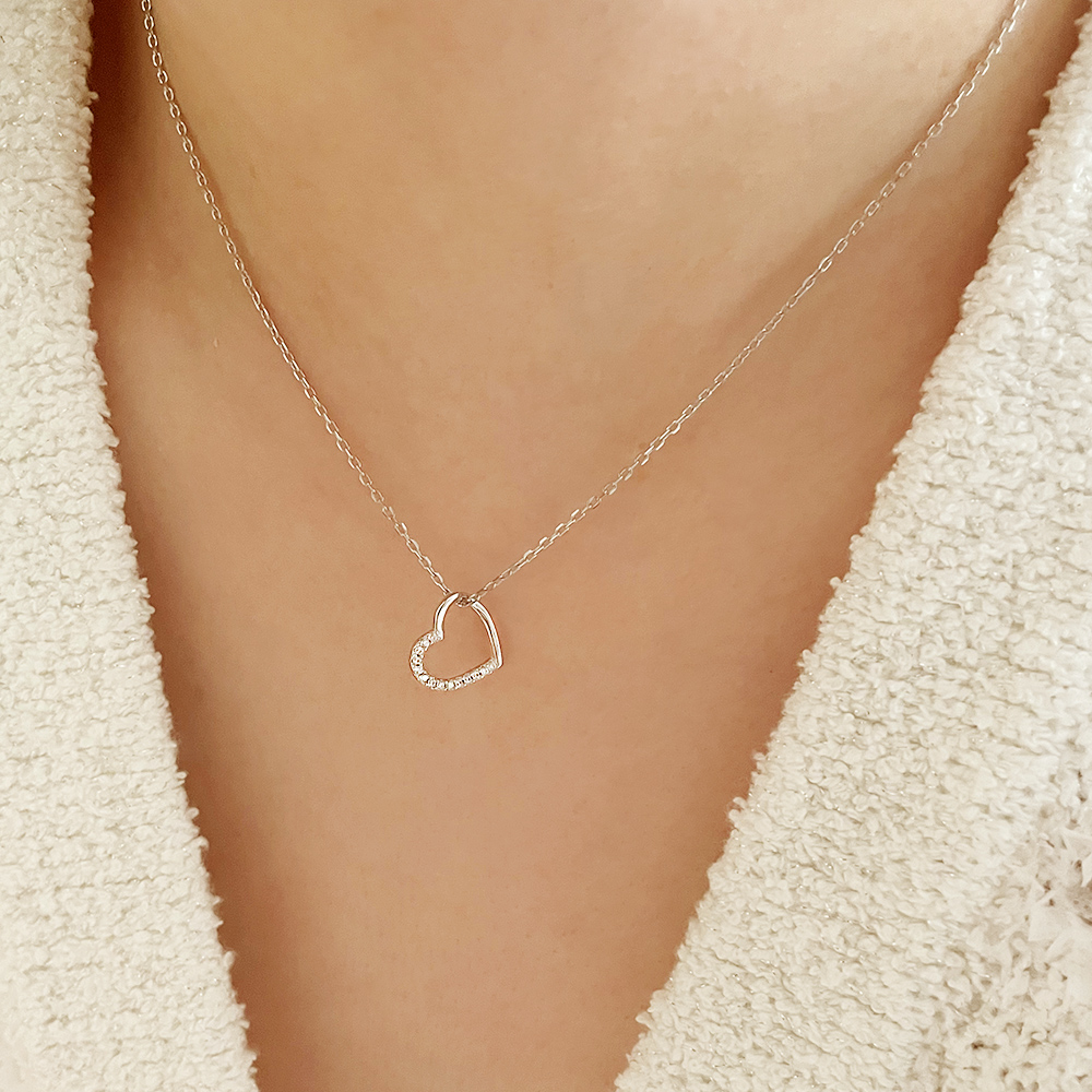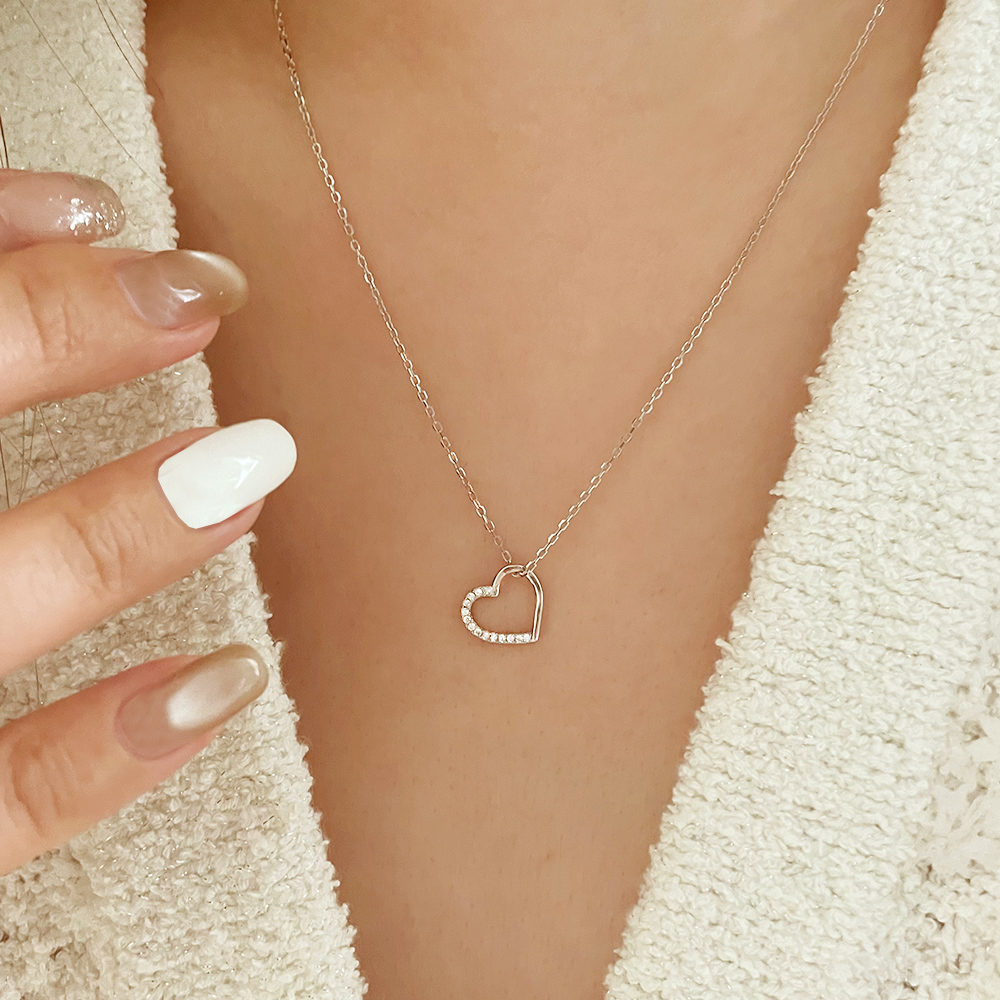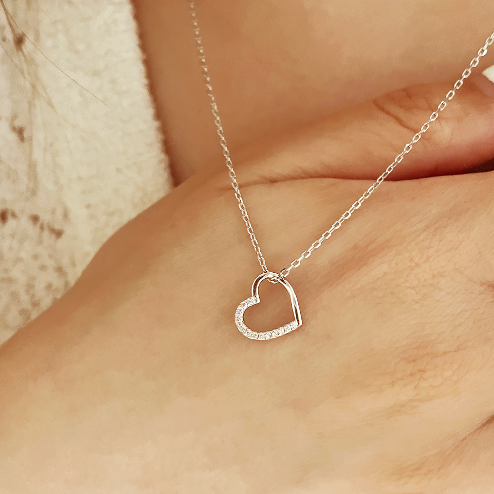 ・名稱:Faye 925純銀愛心心型亮鑽銀色女項鍊