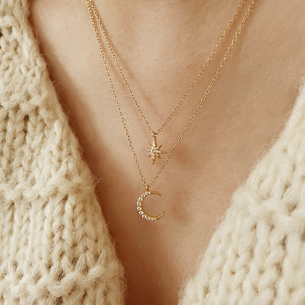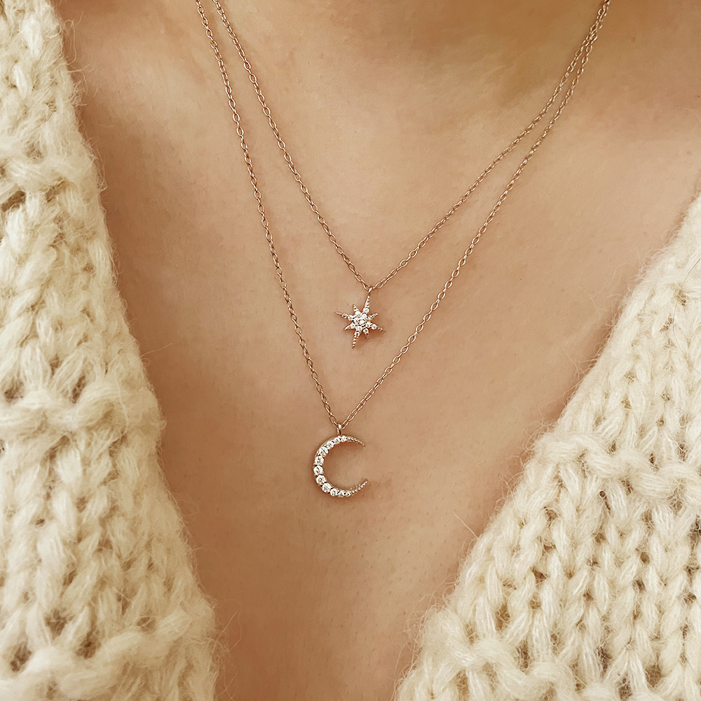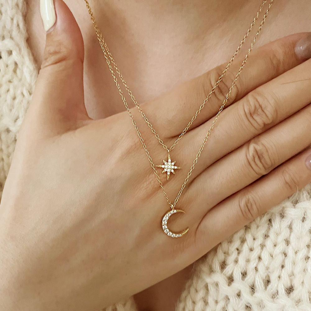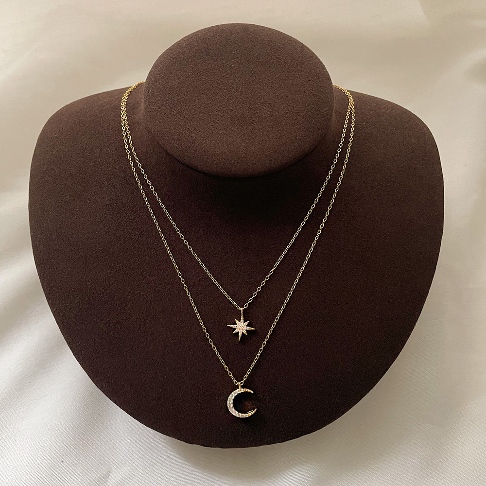 ・名稱:Florence 925純銀雙層月亮星星八角星銀色金色女項鍊項鏈