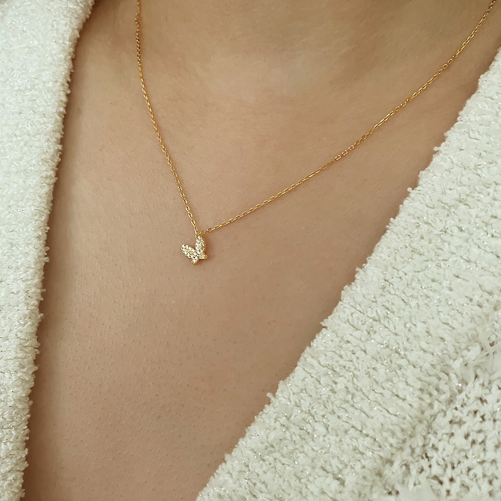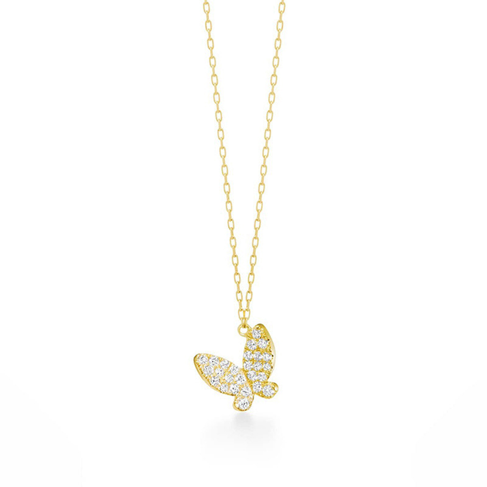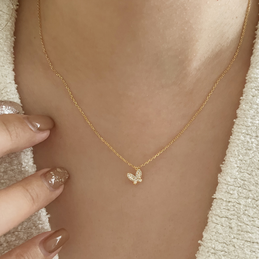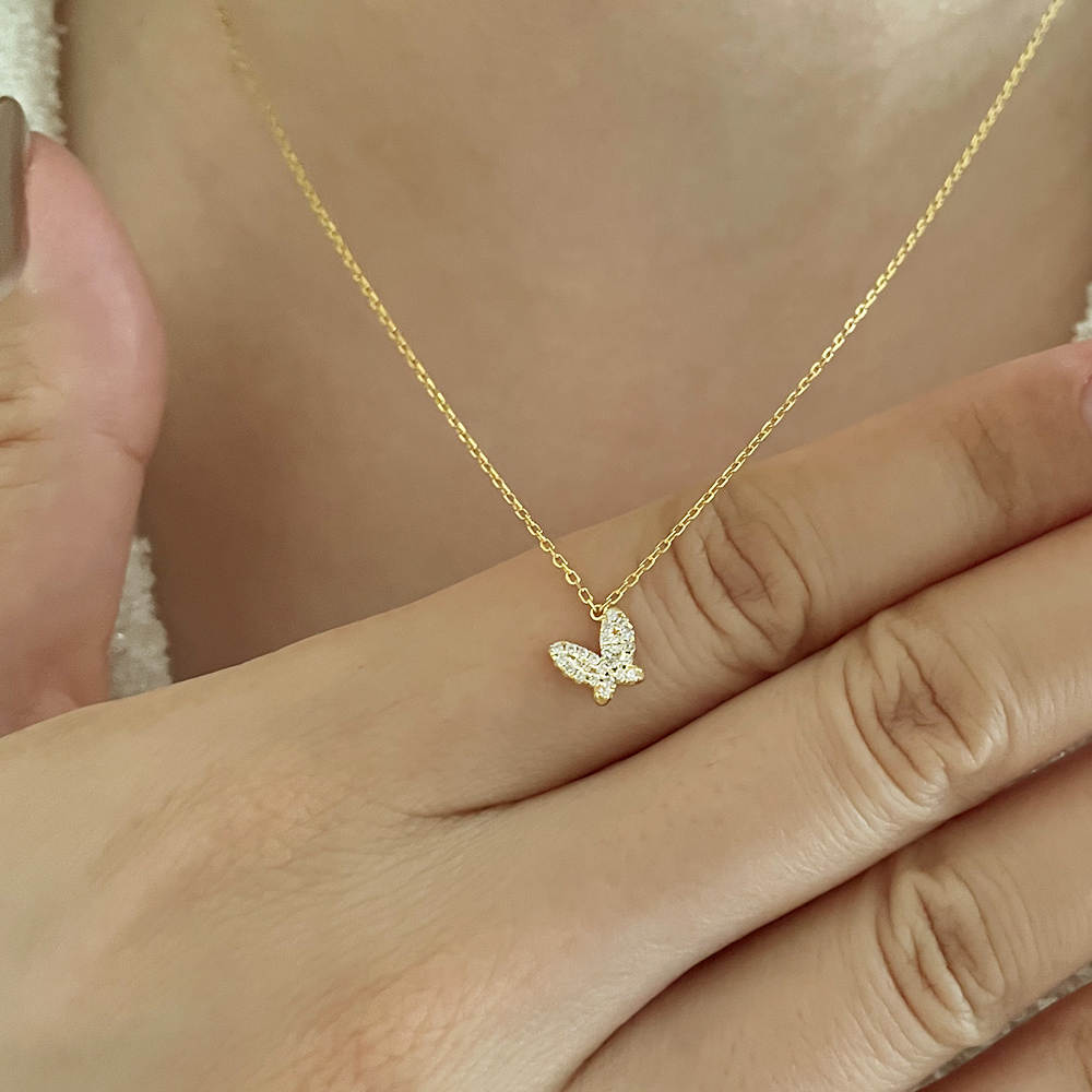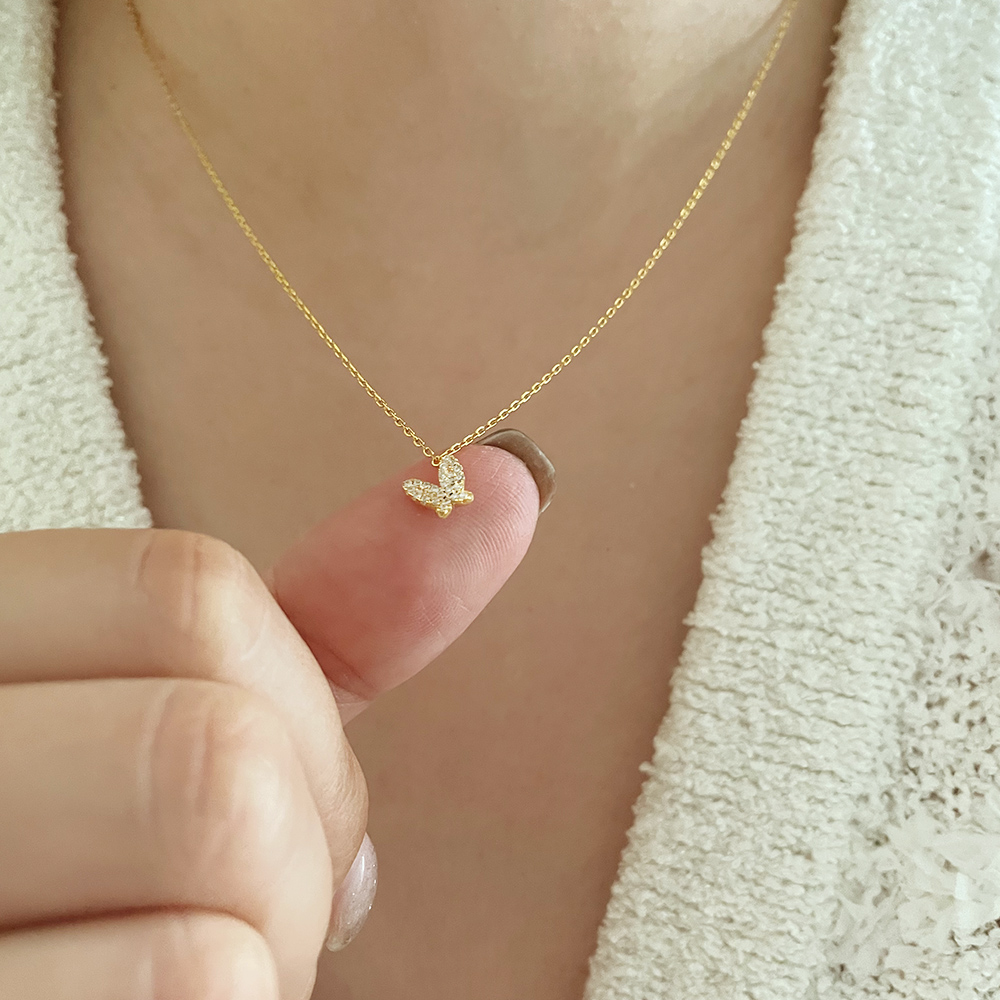 ・名稱:Una925純銀迷你蝴蝶碎鑽金色女項鍊