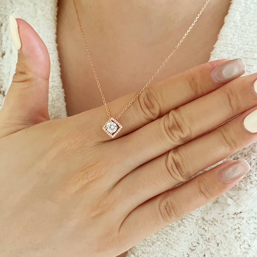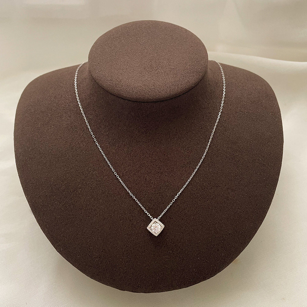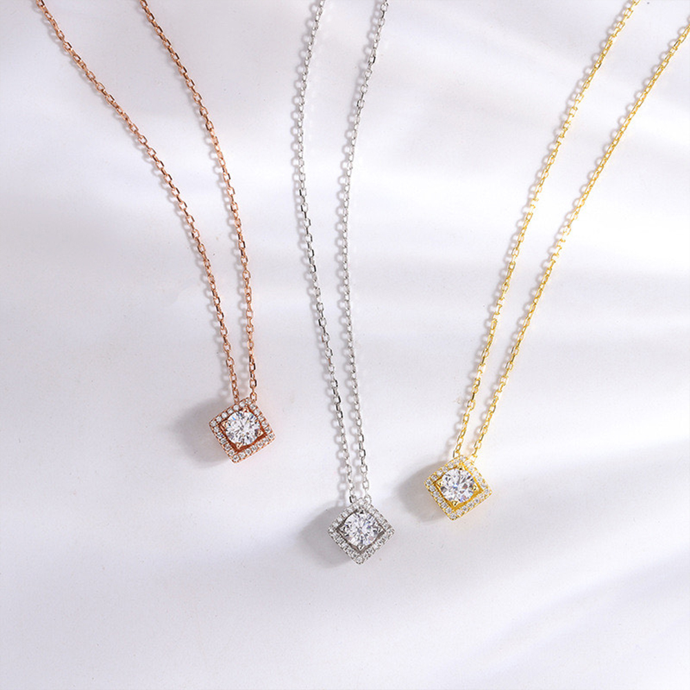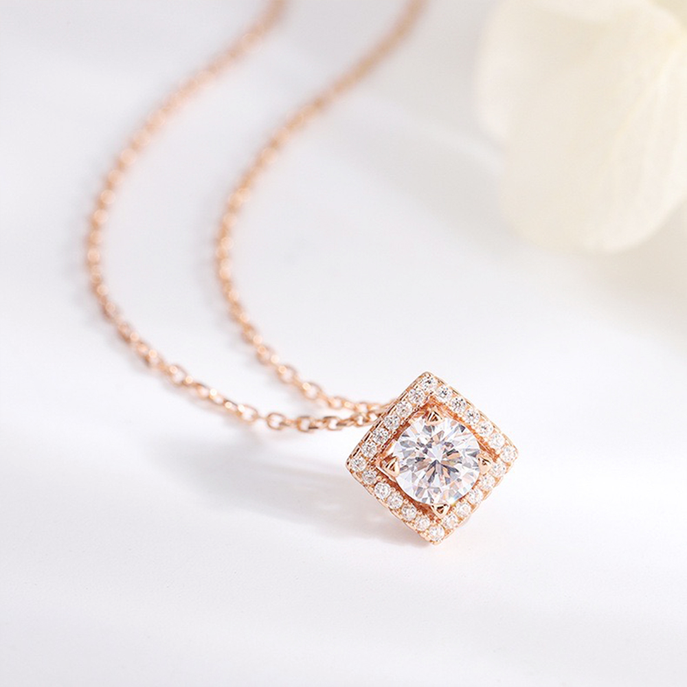 ・名稱:Yoshi 925純銀菱形閃耀亮鑽銀色玫瑰金色女項鍊項鏈